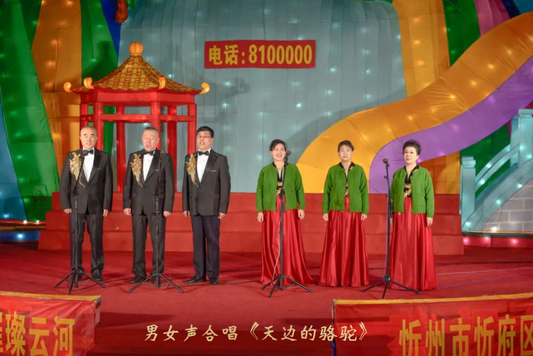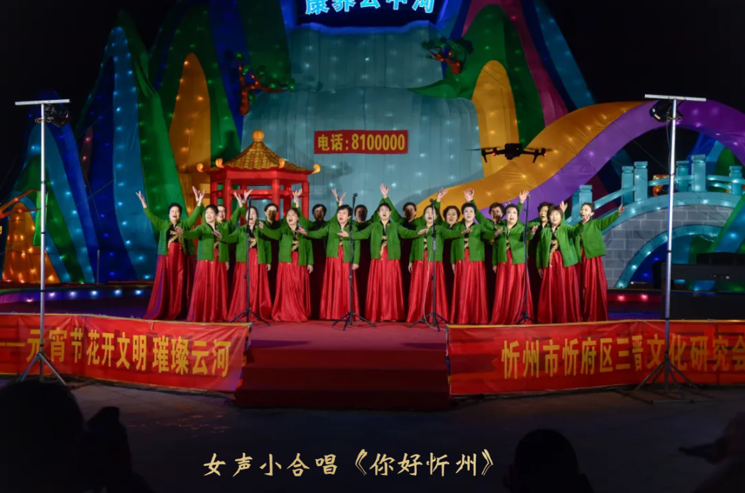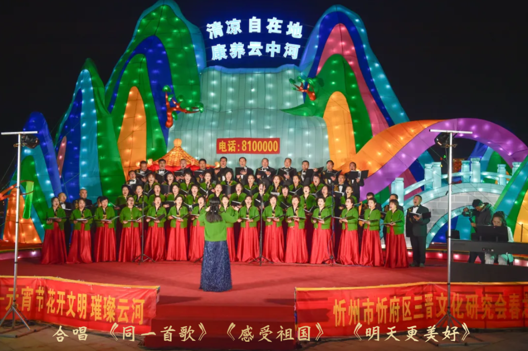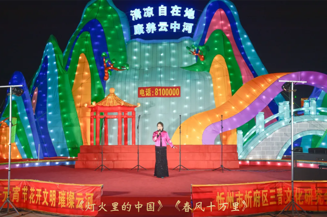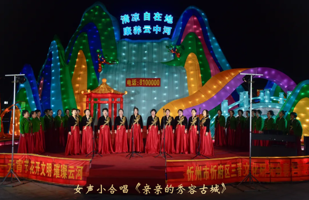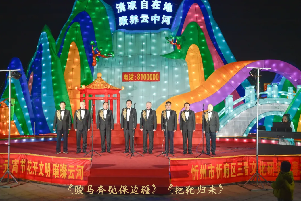 随后,春之音合唱团以《看秧歌》《梦陀罗》《我的祖国》唱出三晋儿女的豪迈,以丝竹悠扬的器乐合奏《上春山》,绘就一幅春山叠翠、万象更新的听觉画卷;周丽宁老师一曲《灯火里的中国》温柔婉转,道尽万家灯火中的幸福图景;男声小合唱《骏马奔驰保边疆》铿锵有力,与户外“骐骥”灯组遥相呼应,象征着忻州儿女奋进新征程的志气与担当;原创歌曲《你好忻州》《亲亲的秀容古城》则以本土旋律,诉说对故土的眷恋与邀约。