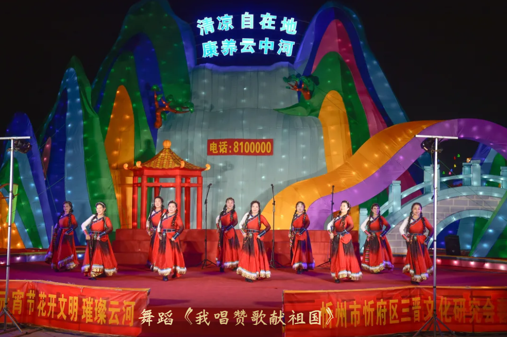 鼓声起,山河振。元宵晚会以气势恢的鼓舞《花开文明 文耀云河》正式启幕,北合索鼓舞队擂响春雷,紧随其后,忻州广场舞协会栗燕等带来舞蹈《我唱赞歌献祖国》,舞步铿锵、笑容灿烂,以群众艺术的蓬勃活力礼赞伟大时代,瞬间点燃全场热情。