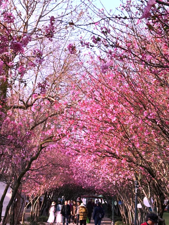 海棠花树有点高,人也比较多,想和花花亲密接触的可以带个小凳子,站高点也比较好拍!