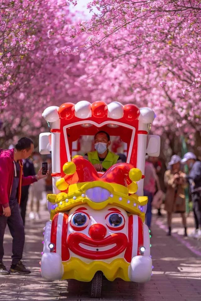植物小屋、柳树、玻璃栈道、湖心亭、超大草坪;童话气息满满的观光车,春日列车招手即停;带张毯子,这不就野餐上了吗,春日踏青氛围感就有了!里面有小商店、小吃店以及小朋友玩的一些娱乐设施,带娃的快放心冲!