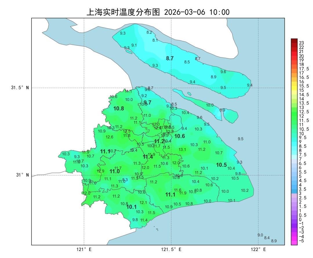 闵行今天多云到阴,7~12℃,午后风力有所增大,加上气温不高,体感还是偏冷的。