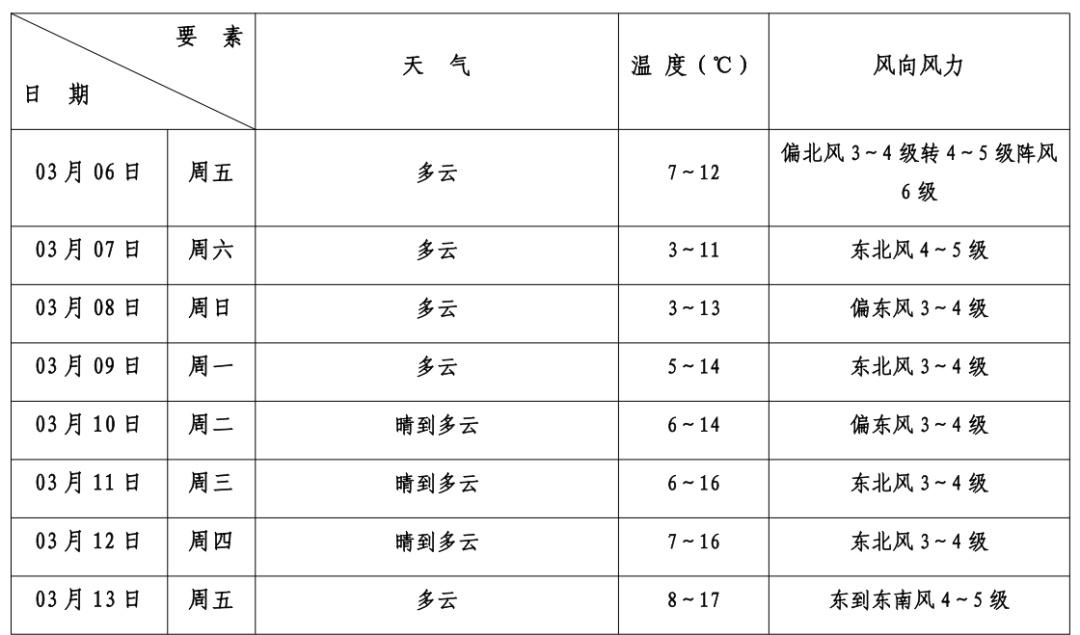 据最新气象资料分析:本区今天受东路冷空气扩散影响,风力有所增大;未来一周,高空转受西北气流控制,以多云到晴天气为主,气温逐日回升。