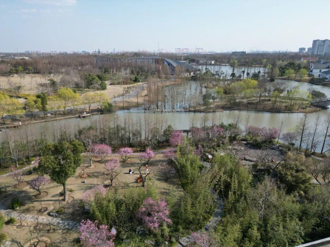 公园内的梅园景区,是一座水上花岛,此时正值盛放初期。梅园内种植了千余株品种各异的梅花,红梅、腊梅、白梅竞相绽放,色彩斑斓,交相呼应。