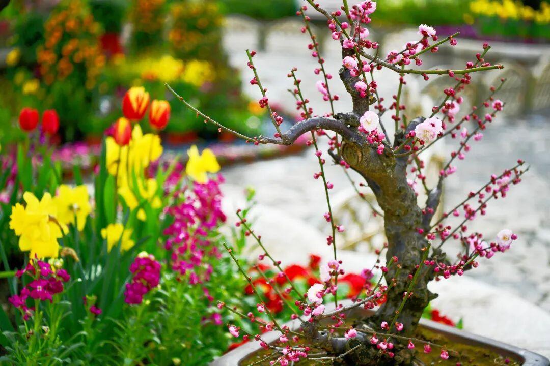 公园以“一坛一景”的造景手法,将梅花老桩与时令花卉巧妙相融。梅林疏影横斜,一步一景皆是江南诗意。