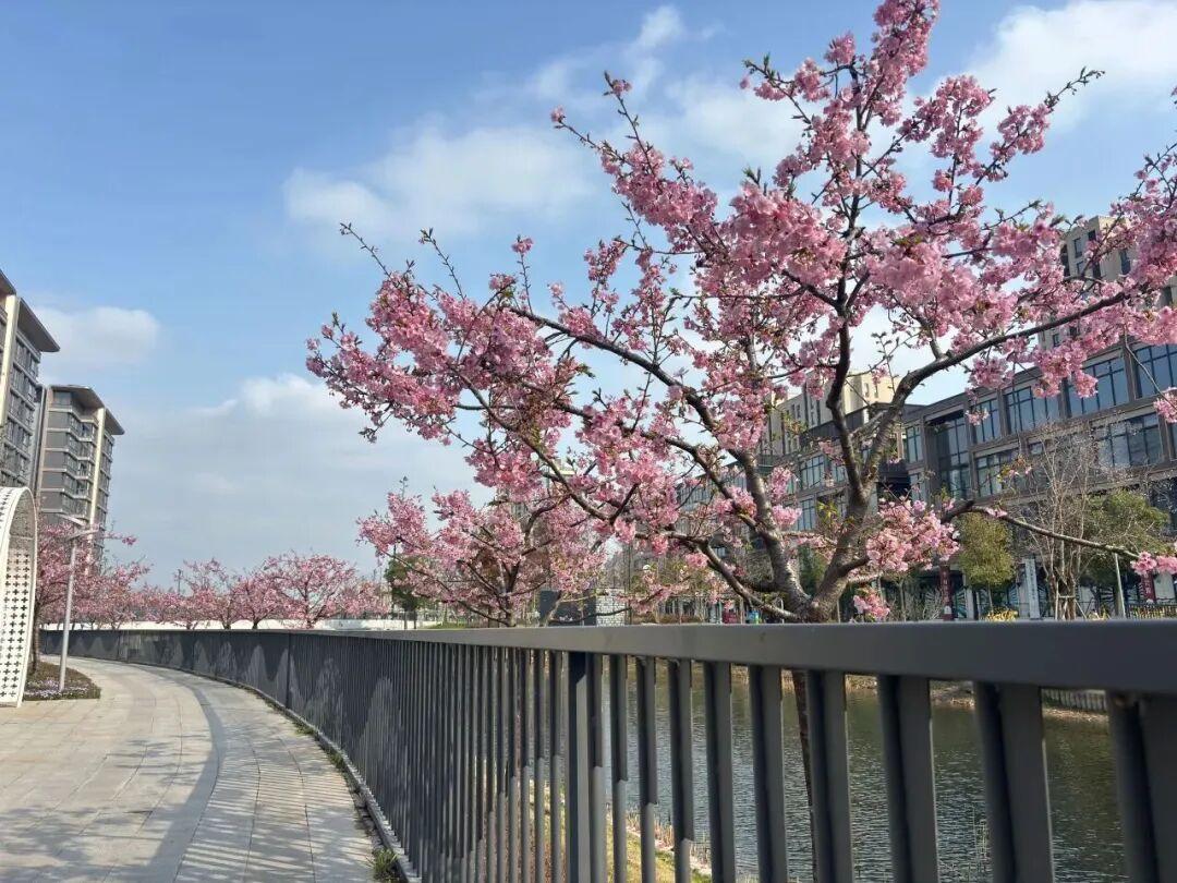 常和绿地是普陀区公共绿地内栽种河津樱最密集的区域,主要集中在真南路到祁连山路路段,搭配雅樱、染井吉野樱等品种,各类樱花树总数约400株。早樱的绽放,也为即将全面到来的樱花季,奏响了浪漫序曲。