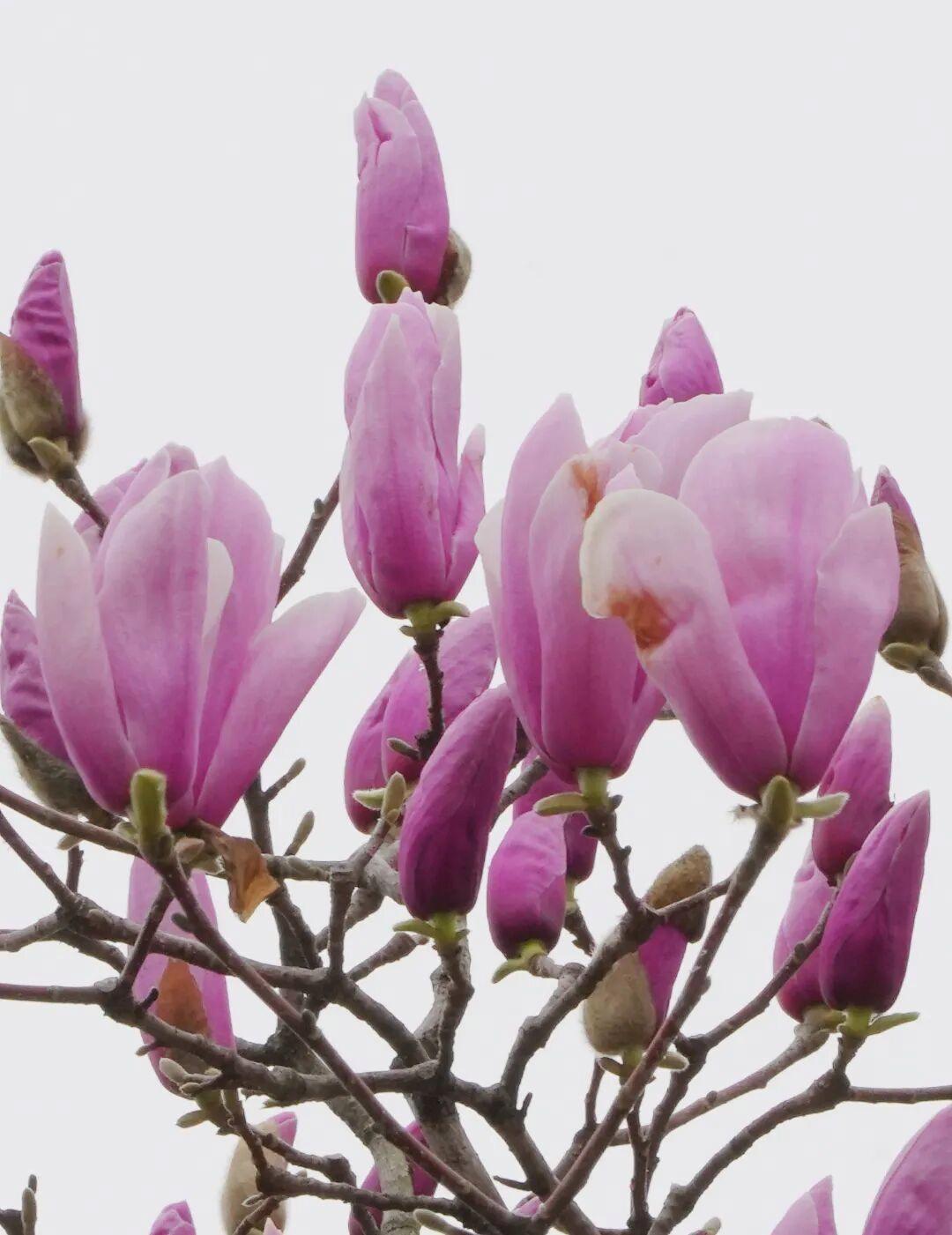 天气乍暖还寒时,是蜡梅正处花期收尾的黄金时刻,暗香依旧、花容未减。淡黄蜡瓣缀满枝头,冷香清冽悠远,与初绽的白玉兰同框,绘就 “冬花未尽、春花已盛” 的独特景致。