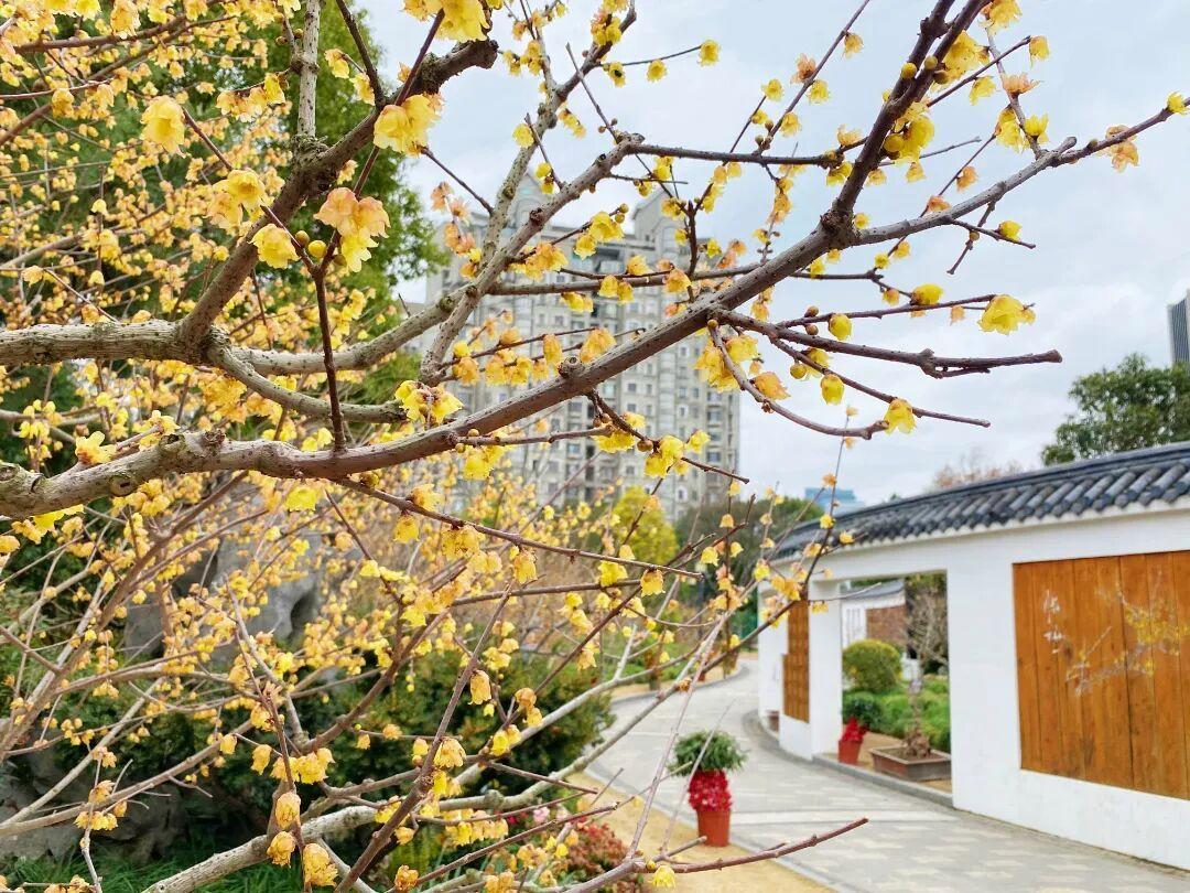 真如公园的蜡梅仍在绽放,淡黄色的素心蜡如铃铛挂满枝条,带着淡淡的清香,与古朴的亭阁相映成趣,造型蜡梅盆景姿态各异,虬枝盘曲间尽显中式美学的风骨。这一树树清雅而坚韧的金黄,成为园中最靓丽的风景。