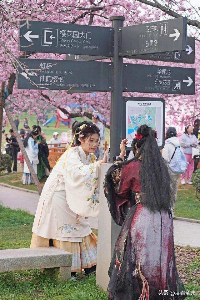 科技的融入,让这场春日花事更具趣味。园区与支付宝联合推出“碰一下”智能赏樱伴游卡,游客只需轻轻一碰,就能免费体验AI智能伴游“楚小樱”的讲解服务。“楚小樱”不仅能介绍樱花的品种、花期,还能推荐最佳赏樱路线、讲解园区的文化故事,让游客在赏樱的同时,了解更多背后的知识。此外,园区内还设置了AI拍照亭,游客可以在这里生成未来幻境合影,与机器狗、机器人互动、同台劲舞,让赏樱之旅多了几分科技感与趣味性。