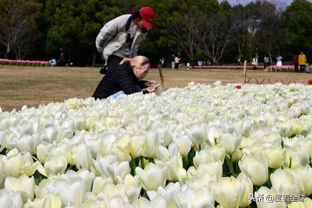 清晨的薄雾还未散尽,金满湖就已迎来第一批追春人。有人背着相机,在花径间慢慢踱步,捕捉花瓣上的露珠与晨光交融的瞬间;有人牵着孩子的手,蹲在花丛边,轻声讲述郁金香的故事,指尖轻轻拂过花瓣,眼里满是温柔;还有人约上三五好友,坐在花海旁的草坪上,晒着太阳,聊着家常,让春日的暖意漫过心底。午后时分,阳光正好,游客渐渐多了起来,欢声笑语与花香交织,原本静谧的公园,变成了一座充满生机的春日会客厅。
