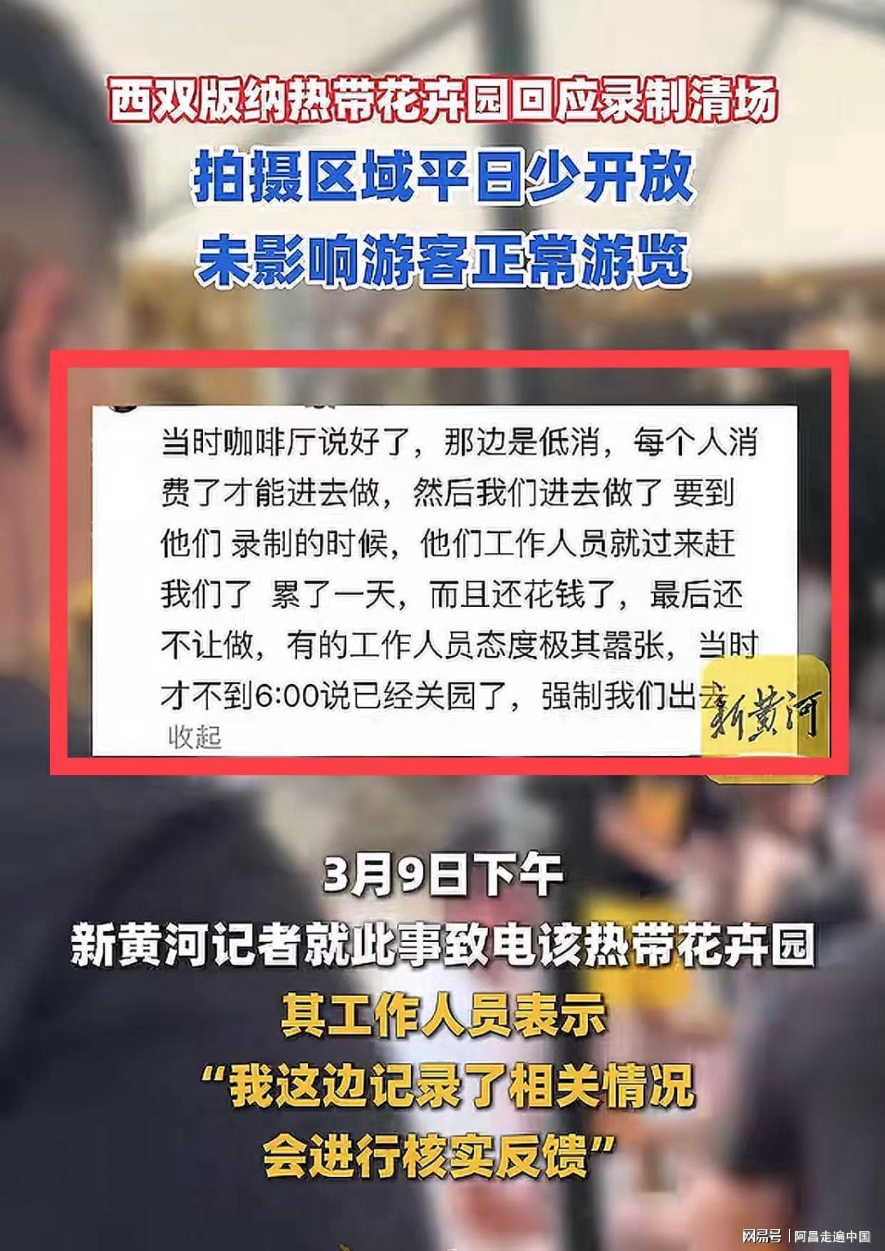 2026年3月9日,有游客爆料,自己从外省千里迢迢飞了3000公里来到西双版纳热带花卉园景区,正规流程购票进入游览,在景区一个咖啡厅再花费88元消费坐下享受这慢时光生活,可是刚入座不久,因为景区来了明星录制综艺节目,所有游客被清场。
