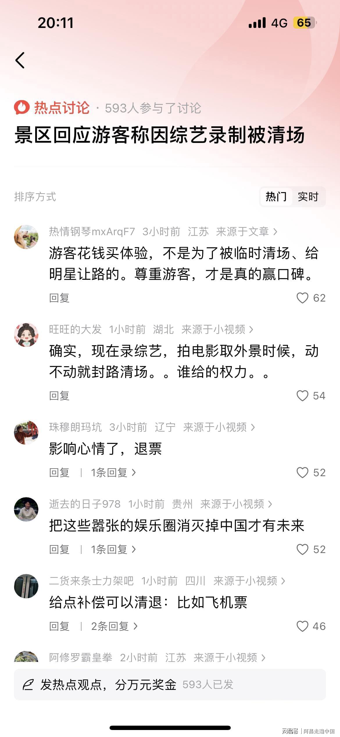 2、游客花钱买体验,不是为了被临时清场、给明星让路的。尊重游客,才是真的赢口碑。