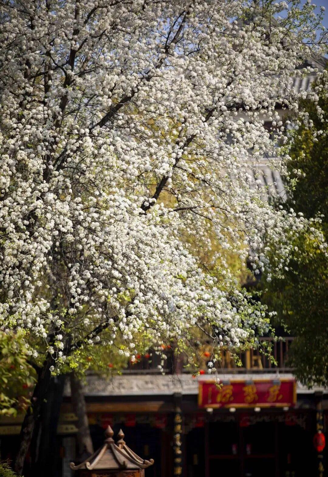 梨花如雪般绽放在安澜门和步云桥附近。洁白的花瓣簇拥于枝头,微风拂过,花瓣纷纷飘落,好似一场浪漫的花雨,让人仿佛踏入了梦幻的童话世界。