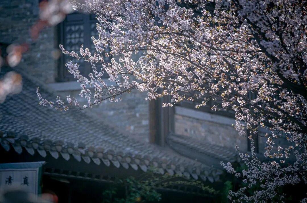 在赵家大院东巷、古城消防队西、肯德基对面等地,粉色的樱花如云似霞。小巧玲珑的花朵簇拥成团,漫步在古城街巷的樱花树下,花瓣轻轻飘落肩头,浪漫氛围拉满。