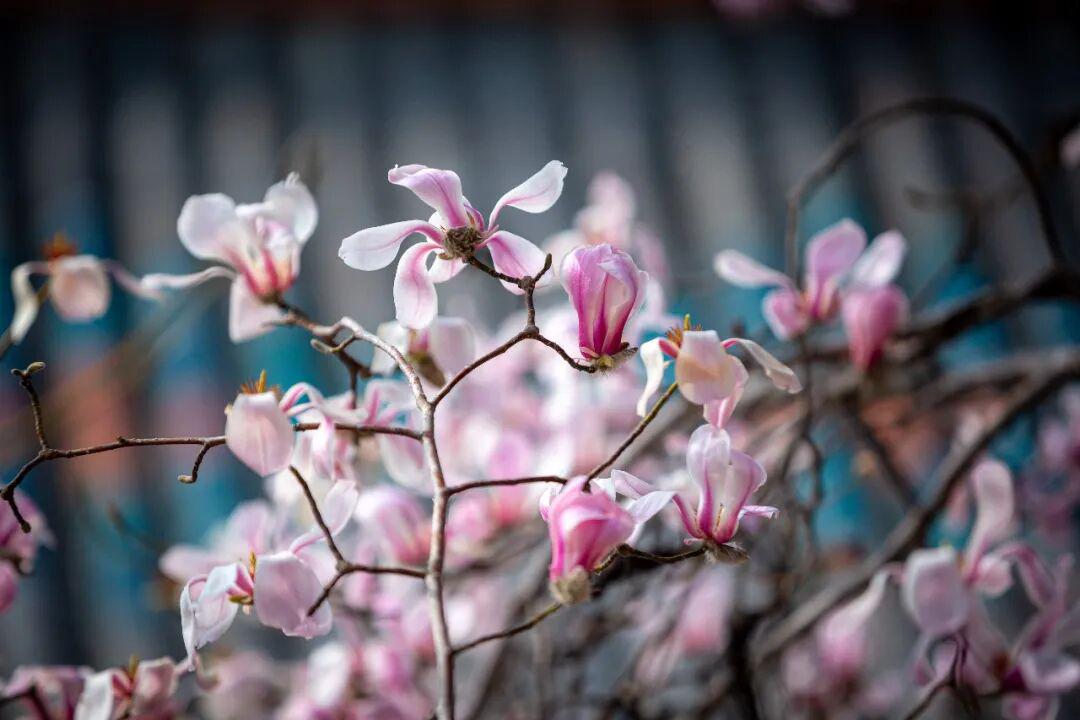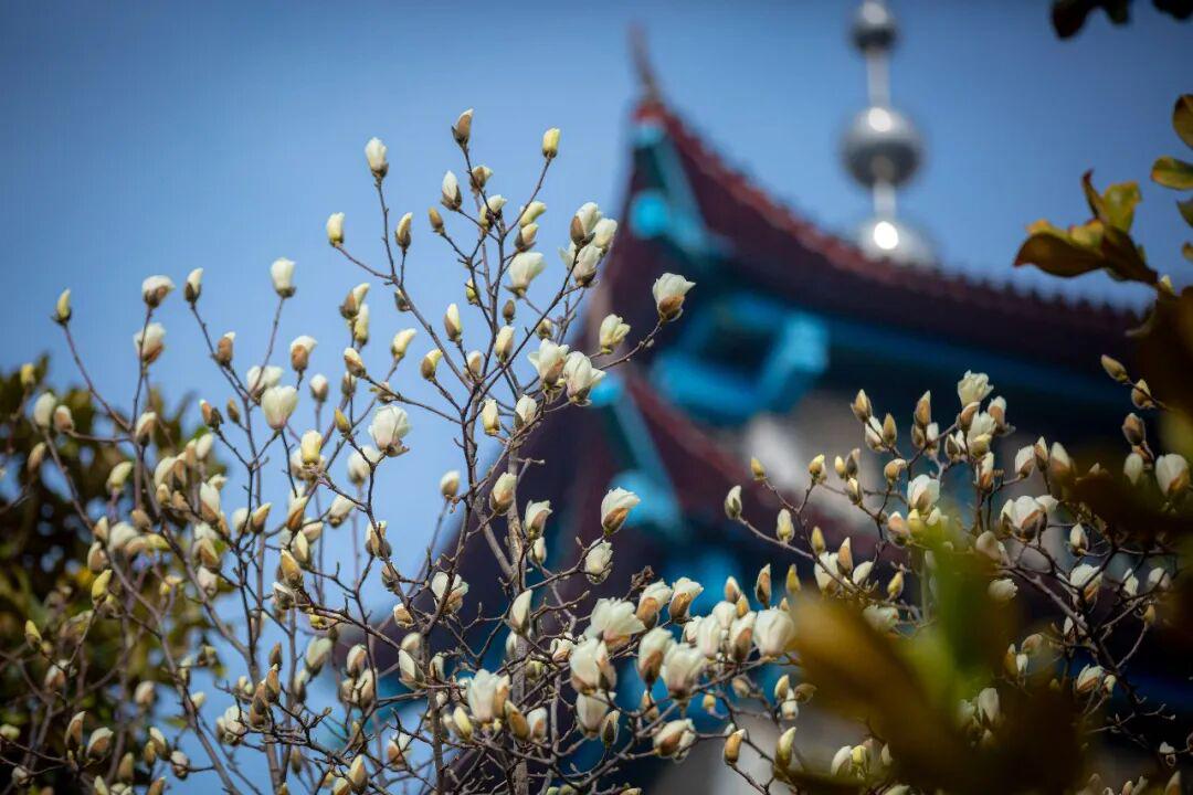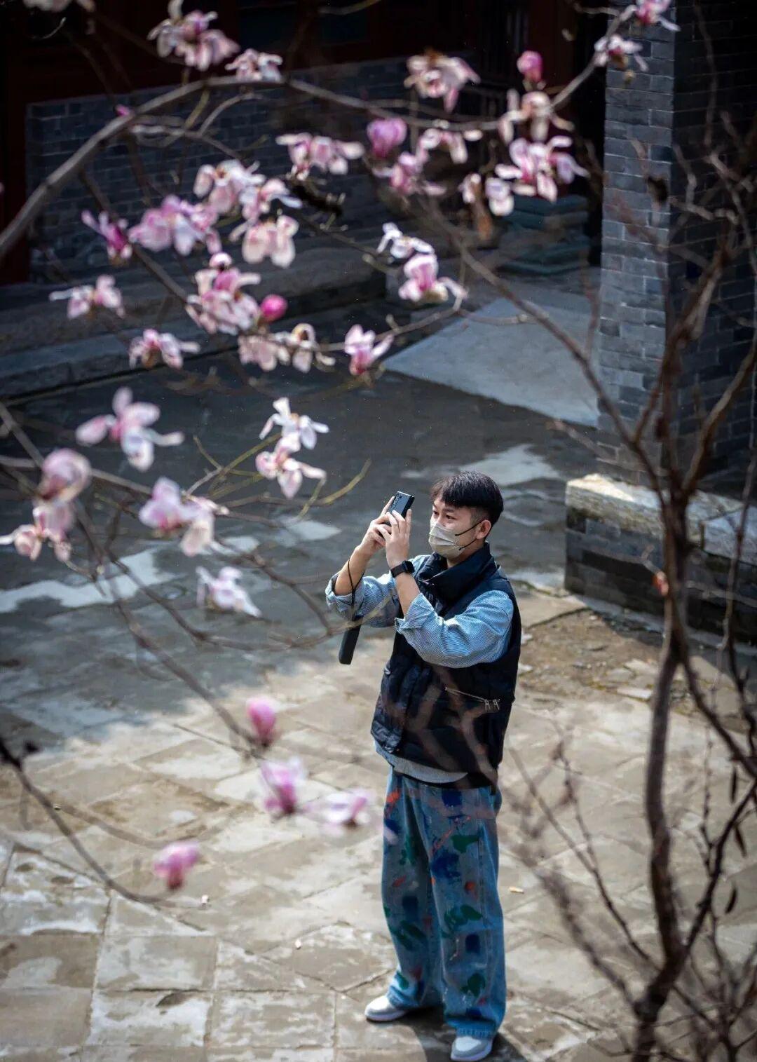 洁白似玉或淡雅紫红的白玉兰,在枝头优雅地舒展身姿。北城墙、台城谣、关帝庙等地,大而饱满的花瓣与古城建筑相得益彰,宛如一幅幅绝美的水墨画,营造出遗世独立的美感。