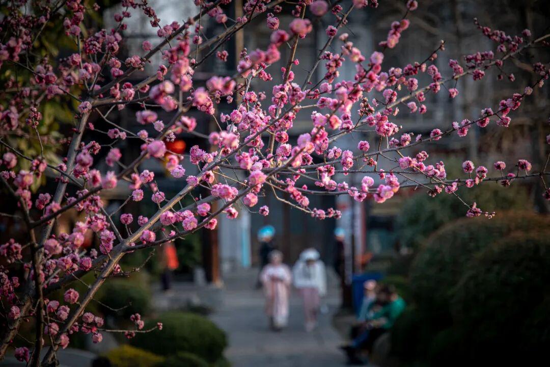 梅花作为古城春天的使者,率先在台儿庄古城里露出笑颜。参将署、天下第一庄牌坊东、复兴广场东侧桥,都是赏梅的绝佳地点。梅花或粉或白,与古朴建筑相互映衬,恰似 “疏影横斜水清浅,暗香浮动月黄昏” 的诗意画面。站在梅树旁,仿若穿越千年时光,与古人一同感受那份赏梅的雅致情趣。