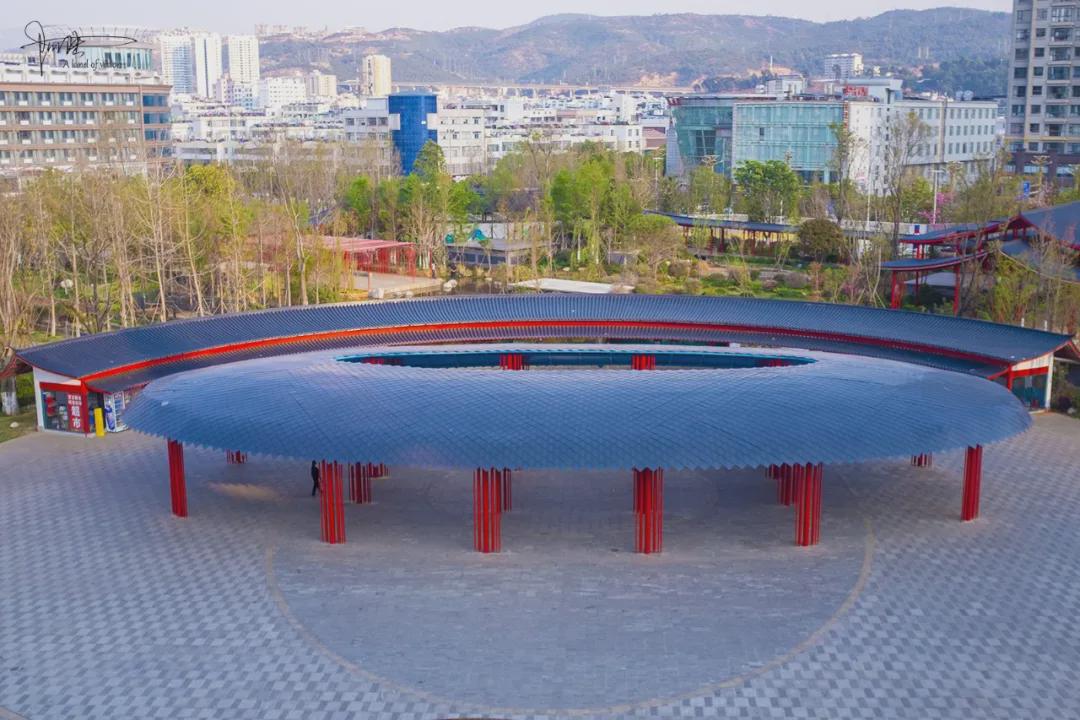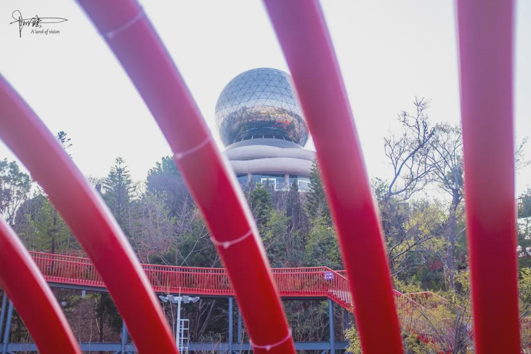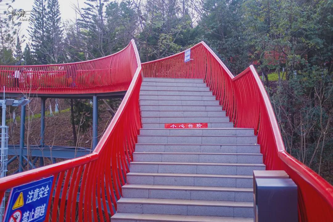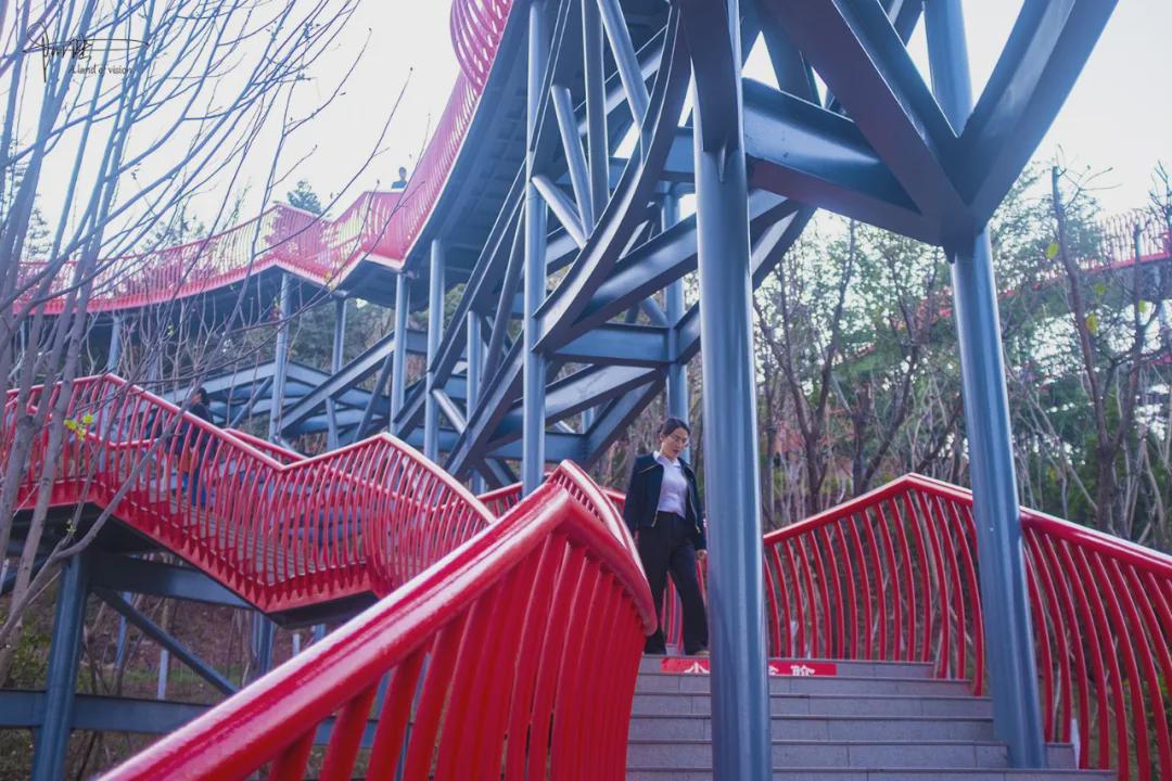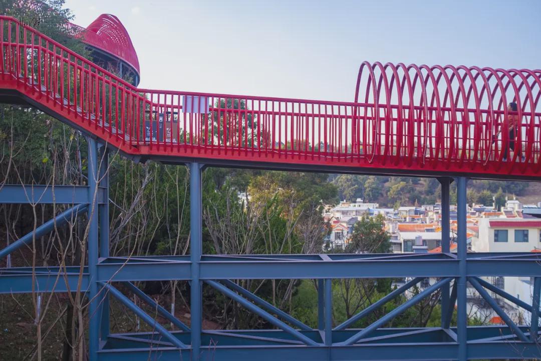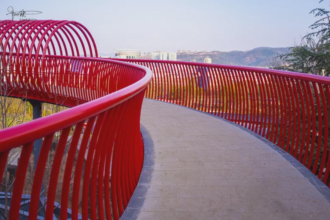 大理市区的明珠广场因为其地标建筑的灯光和后面的火车站相映成趣,前段时间各种夜景的航拍视频突然又在网上“火”了一阵。而其实早在去年年底,我就被这个公园如同红色绸缎一般的“凌空栈道”吸引,曾经邀请一位大理本地的朋友共游,可惜把时间的决定权交给他后,便导致一拖再拖,成了不可能完成的任务。某天再次经过此地,就顺理成章地开了趟小差,决定进去一探究竟。