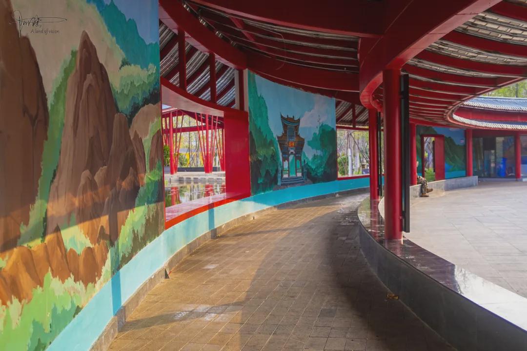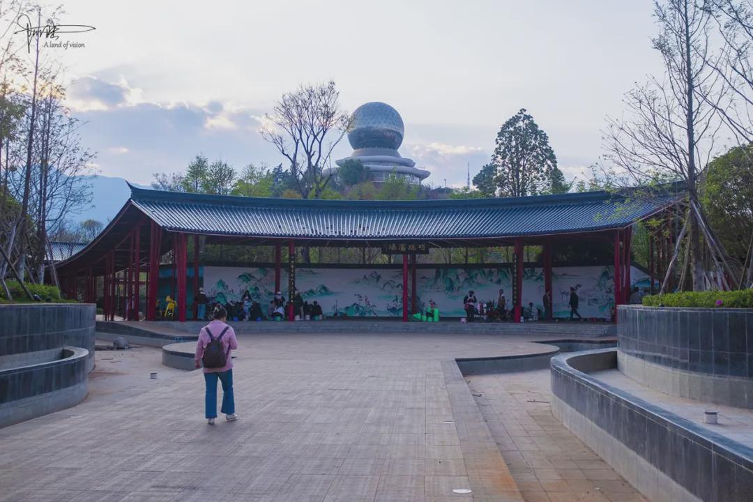 让我略感惊讶的是,虽然数次跟这个公园擦肩而过,但始终受到茂密的植被及其它建筑物遮挡。这也导致置身其间后,展现在眼前的公园无论广场、长廊还是人文雕塑,显然都比想象中的要“宽敞”和“精致”太多。这哪里是寻常的城市绿地呀?分明是大理的又一处精心铺陈的艺术综合体嘛。