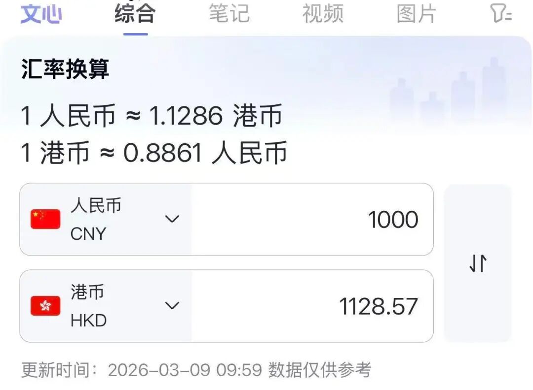 当时的港币实时汇率