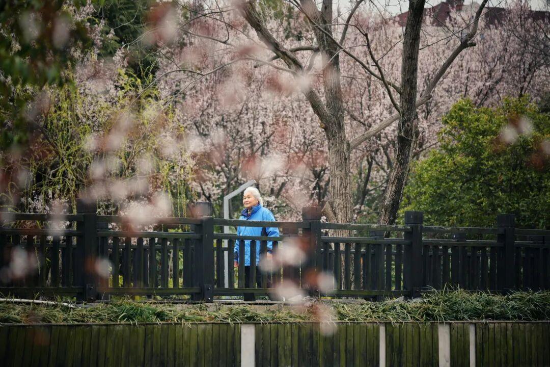 银发与繁花相映