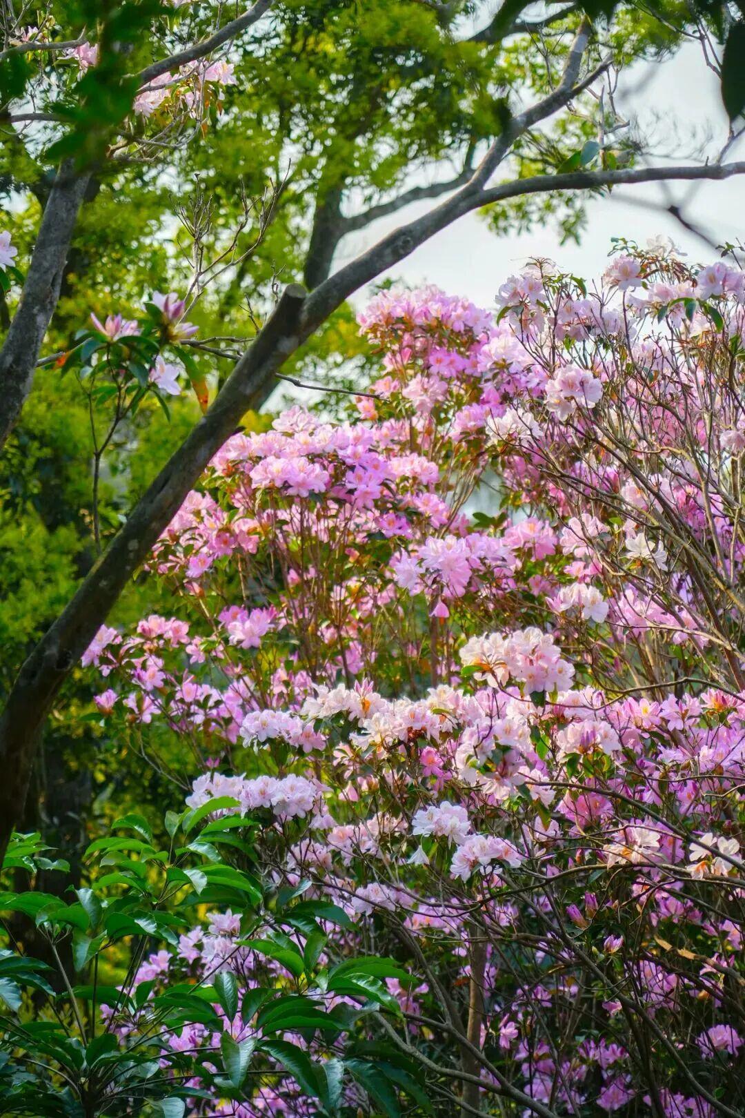 最不能错过的,当属公园里的毓秀园,它是簕杜鹃专类园,成片的花丛顺着山坡向上延伸,宛如一道道流动的鲜花瀑布,视觉效果极为震撼。