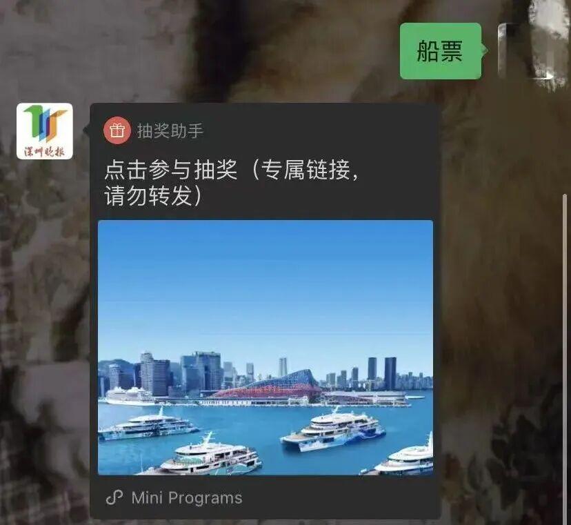 3、在对话框中输入关键词“船票”,获取链接参与抽奖