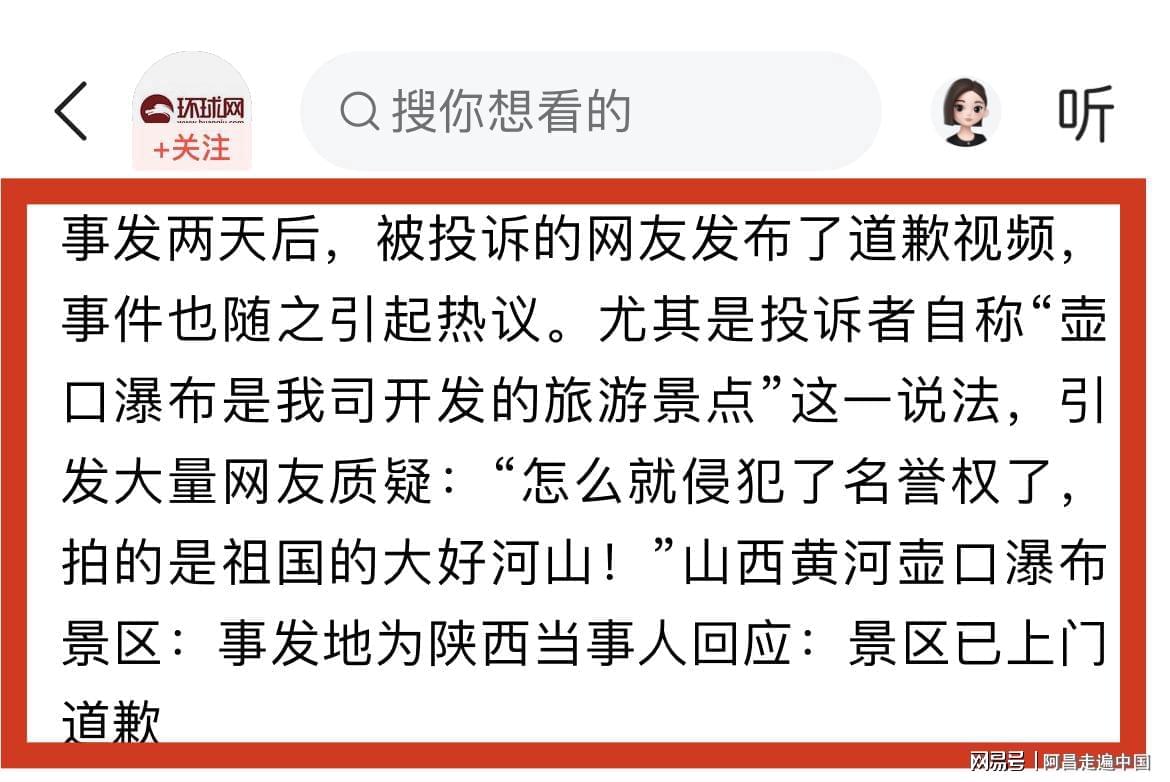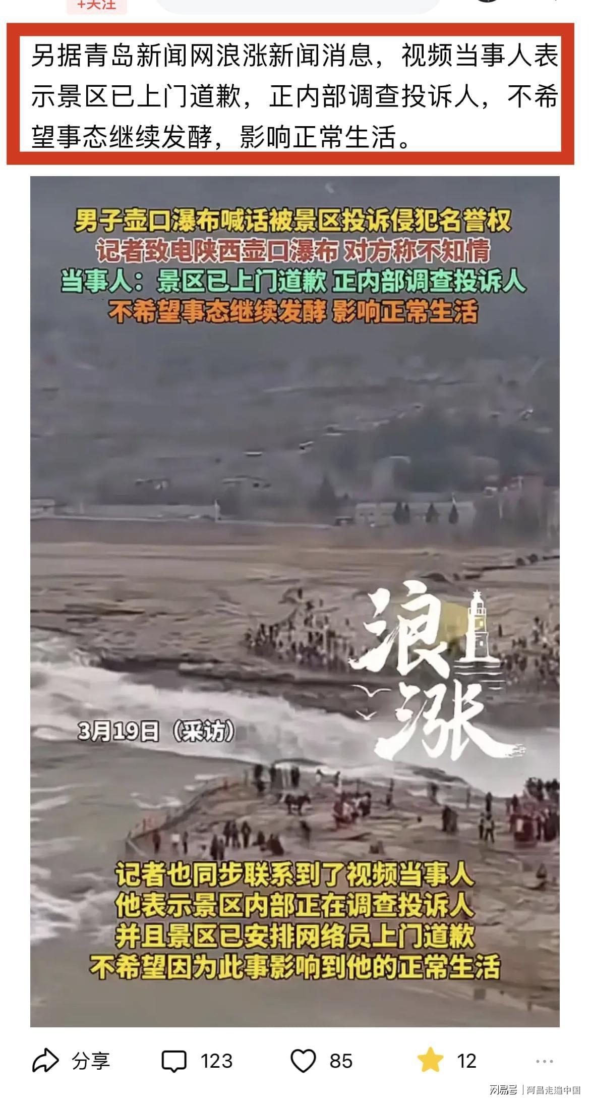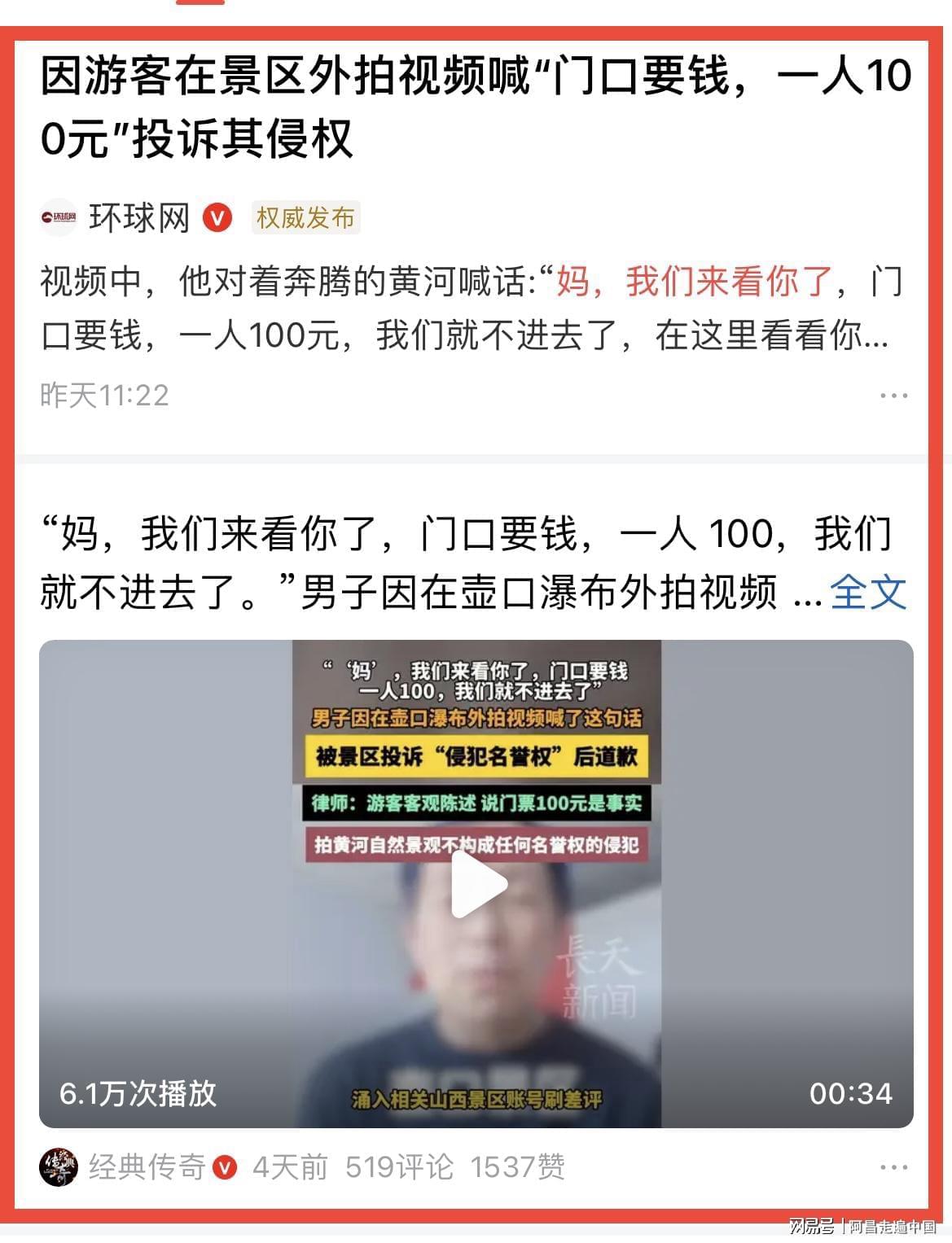 当拍摄这位游客接到景区投诉,视频平台就下架视频,发布者游客向景区道歉,说对不起,侵犯壶口景区名誉权了。