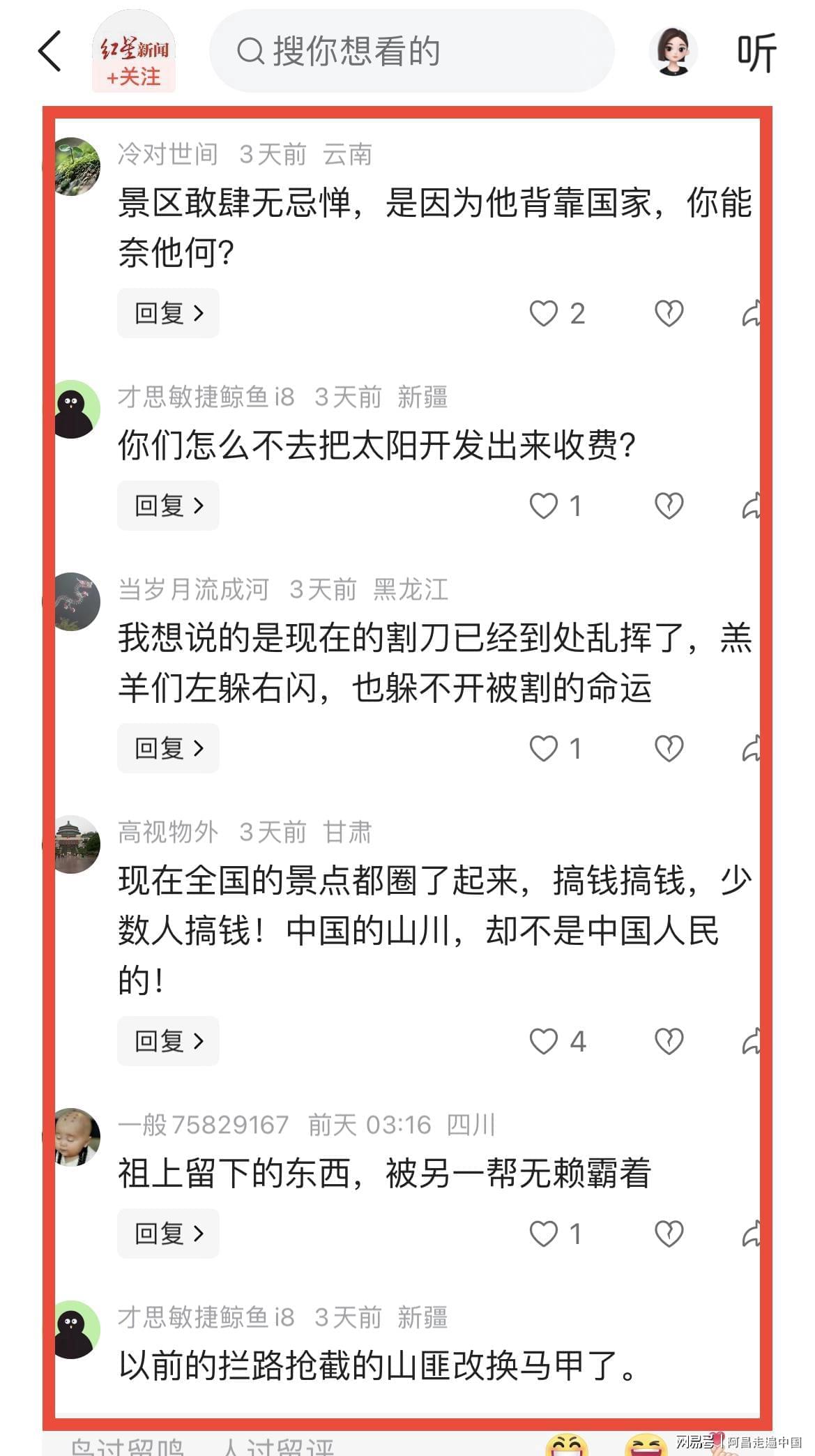 1、现在全国的景点都圈了起来,搞钱搞钱,少数人搞钱!中国的山川,却不是中国人民的!