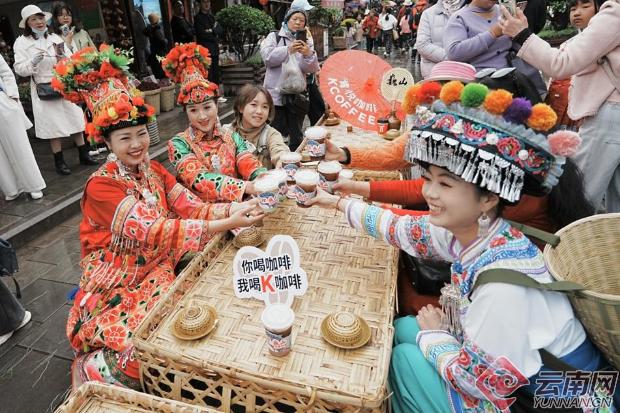 云南网讯(记者 彭锡 通讯员 顾一航)近日,第十三届大理巍山小吃节在南诏古街举办,长街宴作为核心活动吸引千人同席。肯悦咖啡以快闪形式入驻,将咖啡文化与非遗民俗结合,为乡村文旅消费注入新活力。