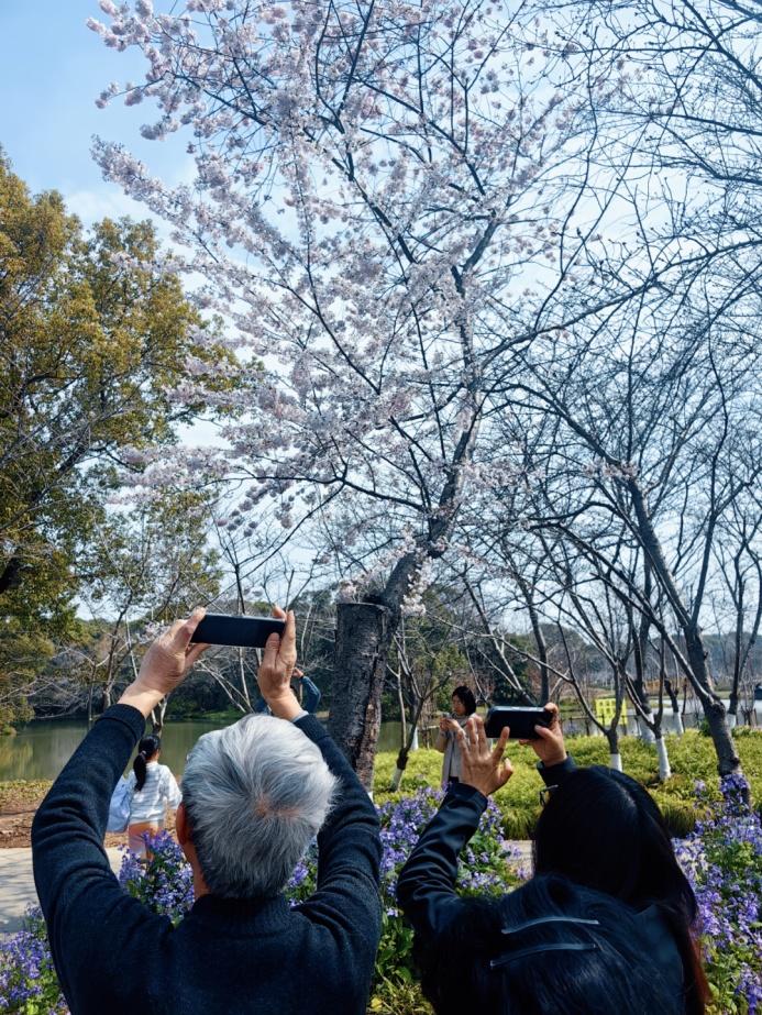 据园方介绍,新引种的垂枝樱是樱花中的珍品,是经过长期选育和栽培形成的优良品种。70余株垂枝樱被精心栽种在樱花岛河畔,满树樱花绽放时,枝条垂落的独特造型将与河畔自然环境完美融合,为樱花岛增添别样风情。位于公园乡土田园区半月形草坪上的阳光樱也毫不逊色,樱花道总长近200米,朵朵樱花堆云叠雪,绯红一片,远观如云似霞。蜿蜒的小路穿梭其中,游客漫步其间,犹如置身于梦幻的“樱花隧道”,感受着春日的浪漫与美好。