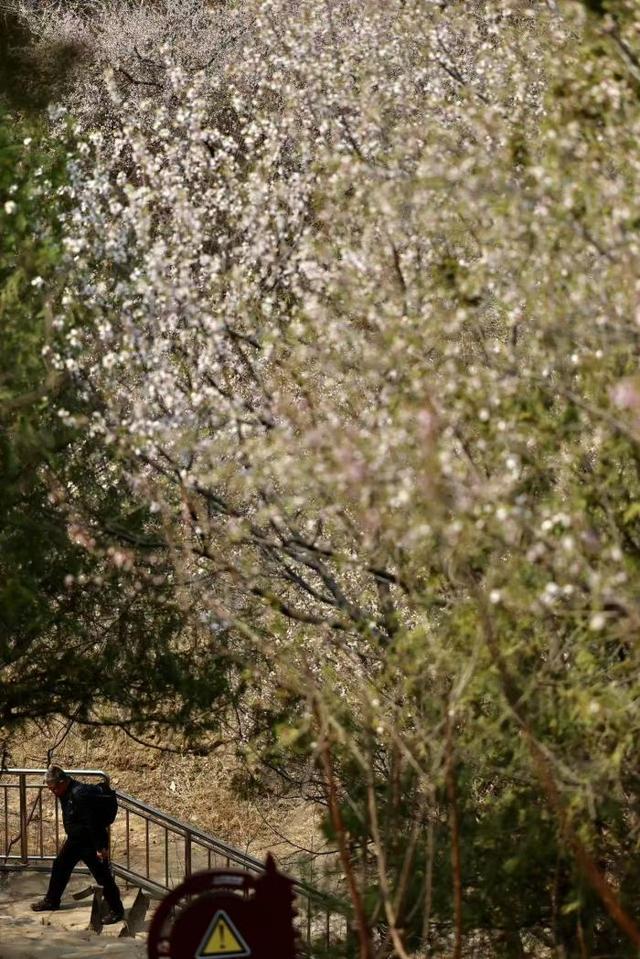 不少市民沿石阶漫步赏景,用镜头记录春日盛景。