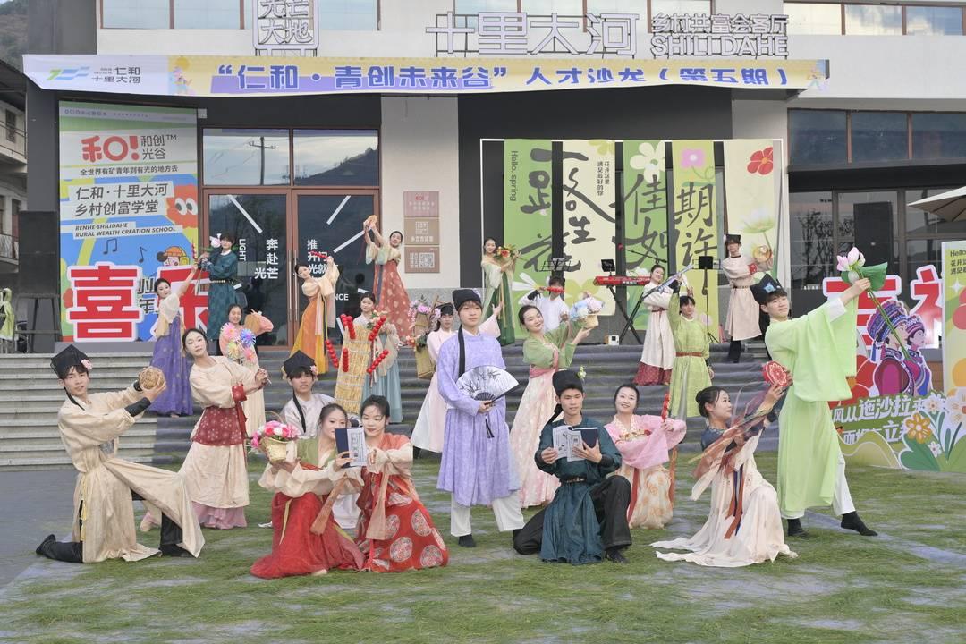 两村同步开设的“共富市集”则成为游客打卡热点。迤沙拉村樱花步道上,彝绣、苴却砚、姊妹糕、彝家米酒等特色产品琳琅满目;立新村十里大河展厅外,时令果蔬、康养茶、特色咖啡、萌宠周边等田园风物人气颇高。