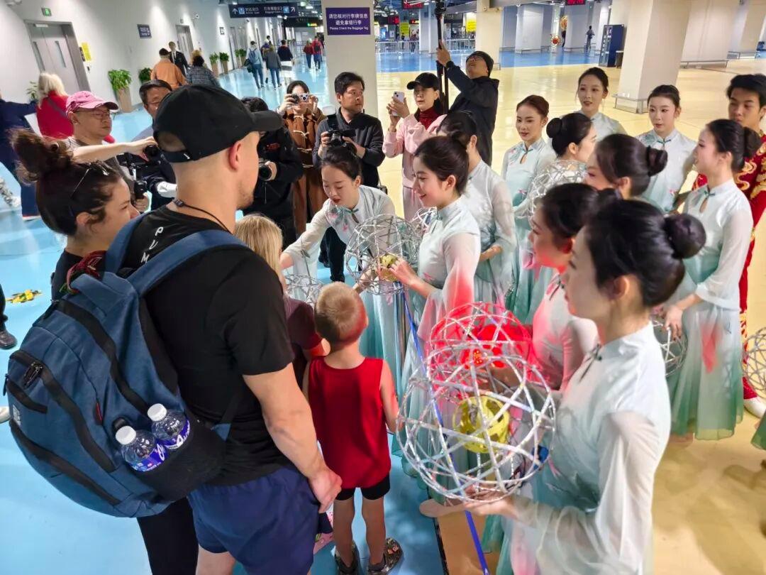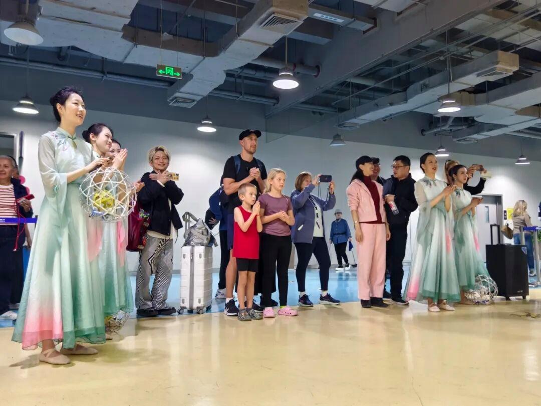 上午8点钟左右,这三艘大型国际邮轮就陆续靠泊在吴淞口国际邮轮港,旅客们在明媚的春光下来到了宝山,来到了上海。9点多钟,他们在t1航站楼大厅里惊喜地发现了一个非遗展,原来这是宝山与奉贤两区的文旅局为旅客们共同准备的一场欢迎活动,而欢迎的主要方式就是拉满“中国风”的非遗展。