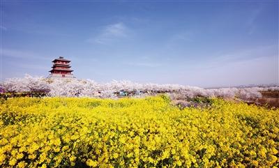 这里拥有绵延12公里的黄河樱花带,5000亩花海、80余个品种、12万株樱花次第开放,是黄河岸边规模最壮观的樱花盛景。早樱、中樱、晚樱根据花期次第开放,整个园区仿佛被积雪覆盖。最令人惊艳的是,树上樱花与地上油菜花同时绽放——树上粉白如云,地上金黄似锦。今年园区继续推出“浪漫樱花”文旅巴士,购买景区门票可免费往返。乘坐小火车穿行樱林,或等到夜幕降临欣赏夜樱灯光秀,都是难忘的体验。