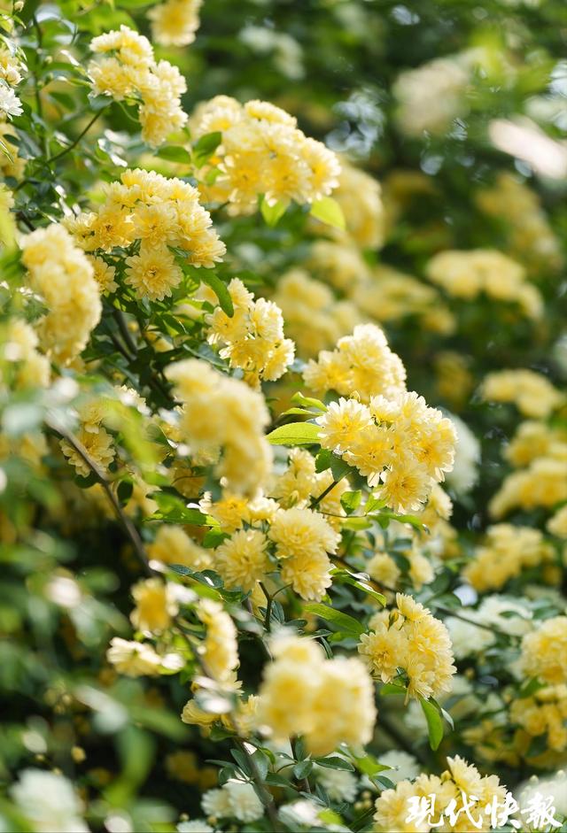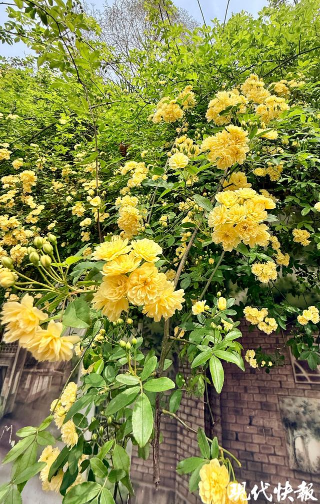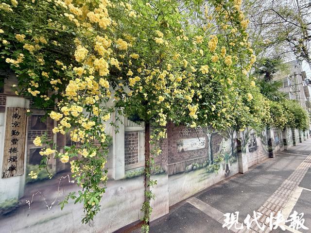现代快报讯(记者 卢河燕/文 吉星/摄)四月的南京,碑亭巷迎来年度限定浪漫。近百米黄木香沿墙倾泻,嫩黄小花层层叠叠,织就一片流动的金色花瀑,微风拂过,暗香浮动。