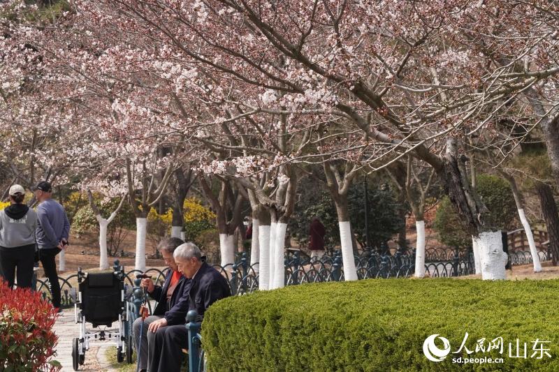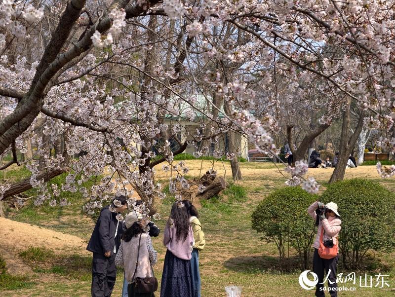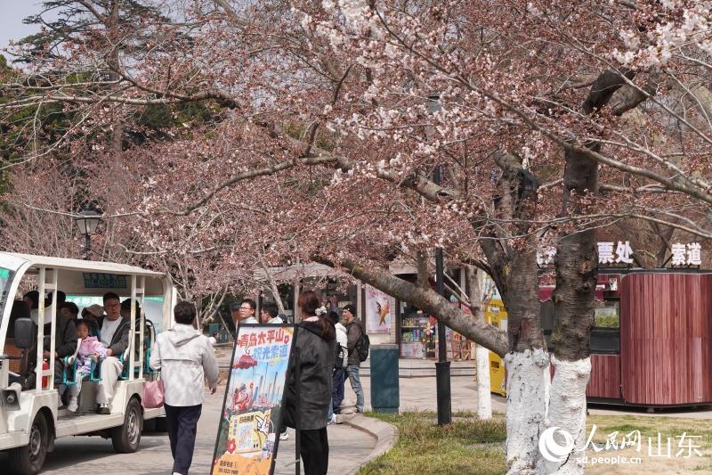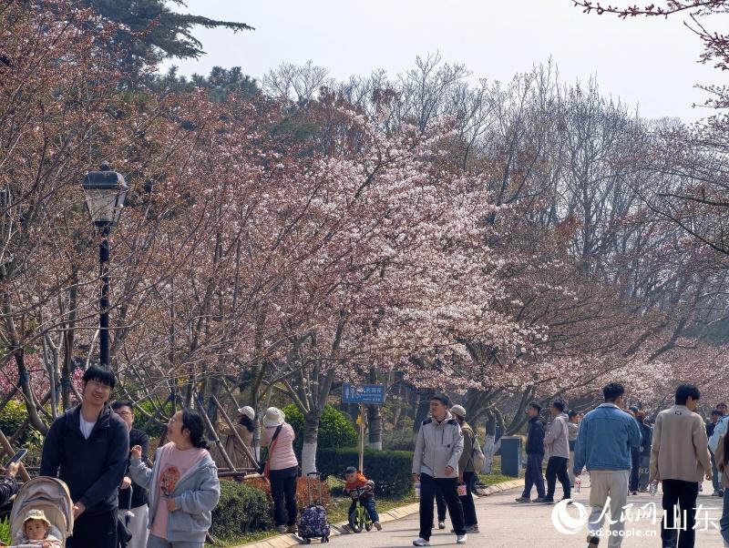 人民网青岛4月3日电 (记者刘颖婕)4月初,春风拂过胶州湾,青岛中山公园内樱花渐次绽放,粉白花瓣缀满枝头,吸引大批市民游客前来赏樱、拍照,共赴一场浪漫的春日之约。