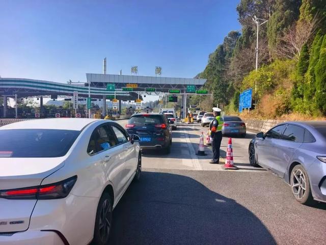 交管支队民警辅警开展交通引导与秩序维护,引导车辆有序通行。
