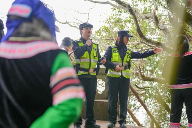 西山分局民警辅警在西山风景区疏导人流,提醒群众注意安全。