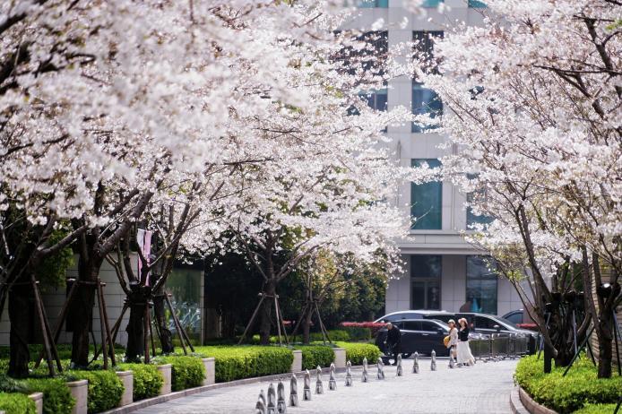 作为兴业太古汇四季流转中独具辨识度的户外空间,愉景大道一年四时各成风景,近日则迎来樱花最盛之时,近百株樱花沿路列植、如云似雪,引领消费者进入春色满盈的赏花之旅。