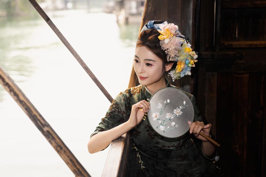 活动一大亮点是挖掘蚕桑文化推出的“蚕花妆”旅拍体验。在乌镇旅拍点位,游客可以换上一袭轻衫,由妆造师精心点染“蚕花纹”,化身兼具古典韵味与现代美感的“蚕花仙子”,让非遗之美可触可感。