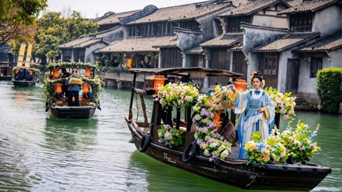 春风拂面,水乡焕新,乌镇“好好生活节”近日回归,横跨春假及五一假期,联动蚕花盛会、江南“美”食节、向往的生活、乌村亲子踏青四大板块,推出蚕花妆文旅体验,打造窗景式“漂亮饭”特色场景。