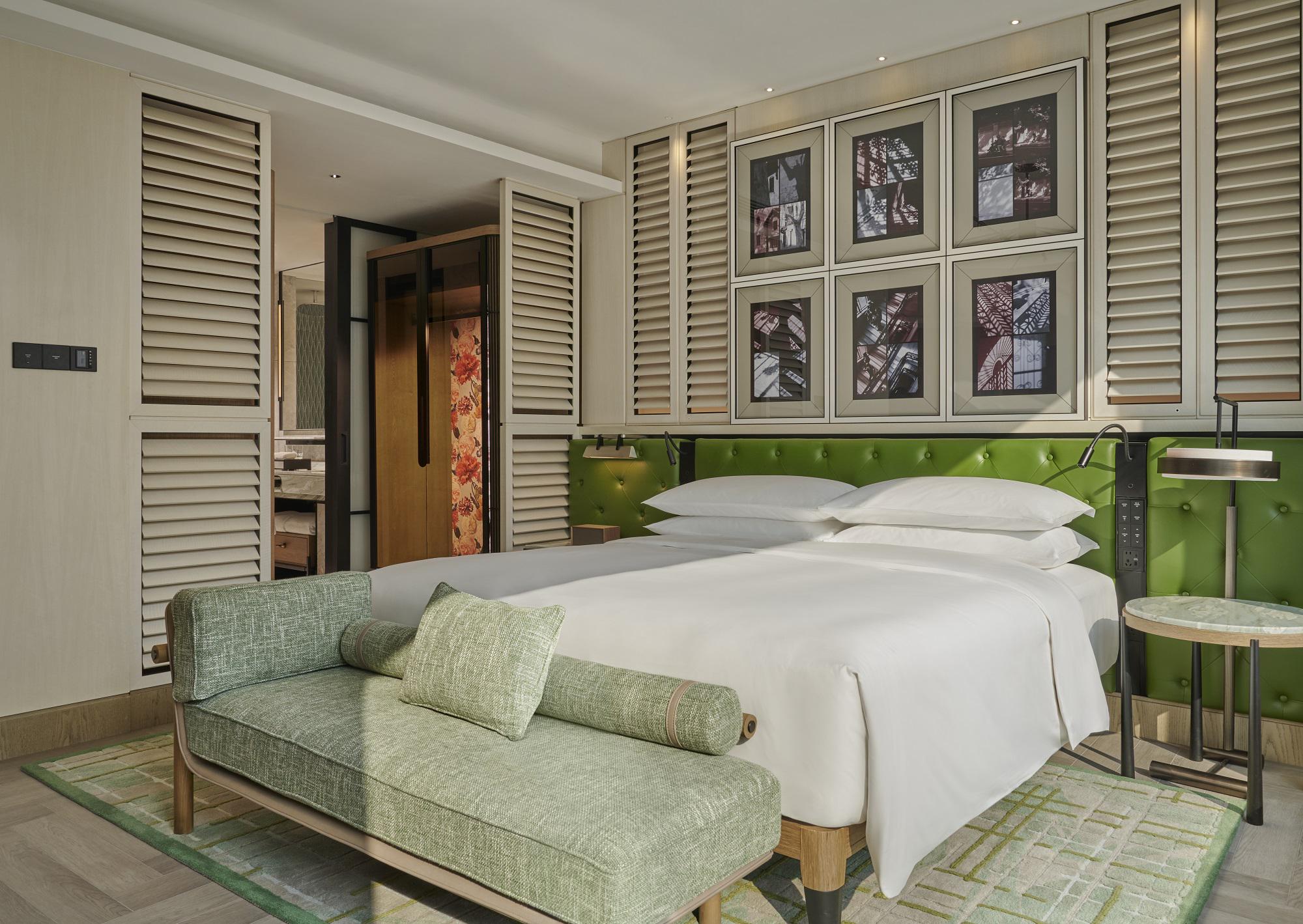 267间客房与套房配有落地玻璃窗,将新旧交织的城市景致引入窗内,一边是历经时光的百年建筑,一边是划向天际的现代楼宇。
