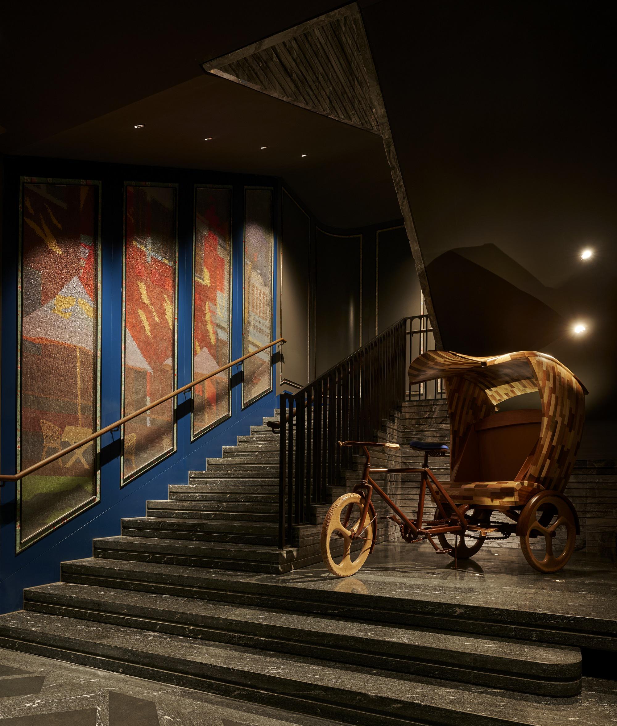 这份“执着”贯穿酒店设计与服务全程。整体设计为“引景入室”,将里弄街巷与都市天际线的纵横交织,构筑成垂直立体的上海生活街区。“我们没有选择简单地复制传统的上海文化符号,而是深入提取了上海独特的石库门风格和里弄文化精髓,以及弄堂生活的空间逻辑,将其融合在酒店的设计之中。” 筆口征哉介绍道。