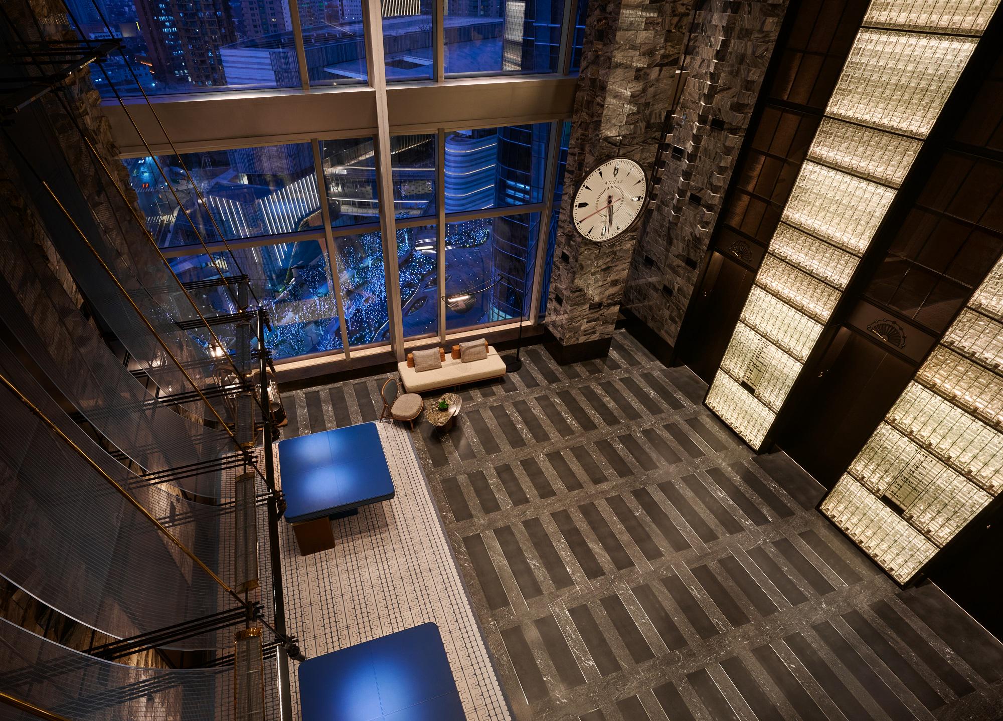 三楼庭院为石库门风格,并设置了光影斑驳的LED砖墙,这样一来,踏入酒店既能领略旧时上海弄堂里阳光透过树荫洒入院落内的景致。大堂一侧设立了一座复刻自上海海关大楼风貌的广场大钟,每天下午17:30,钟声准时响起,灯光与音乐同步切换,开启经典的Andaz Hour。