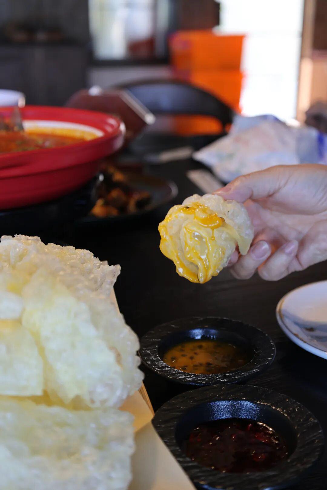 店里的乳扇同样也值得一试,这里的乳扇不仅搭配了传统的玫瑰酱,还颇具创意的加入了百香果酱。乳扇浓郁醇厚的奶香,融合百香果的酸甜清爽,巧妙中和了炸乳扇的油腻,口感层次丰富,入口清爽不腻,每一口都充满惊喜。