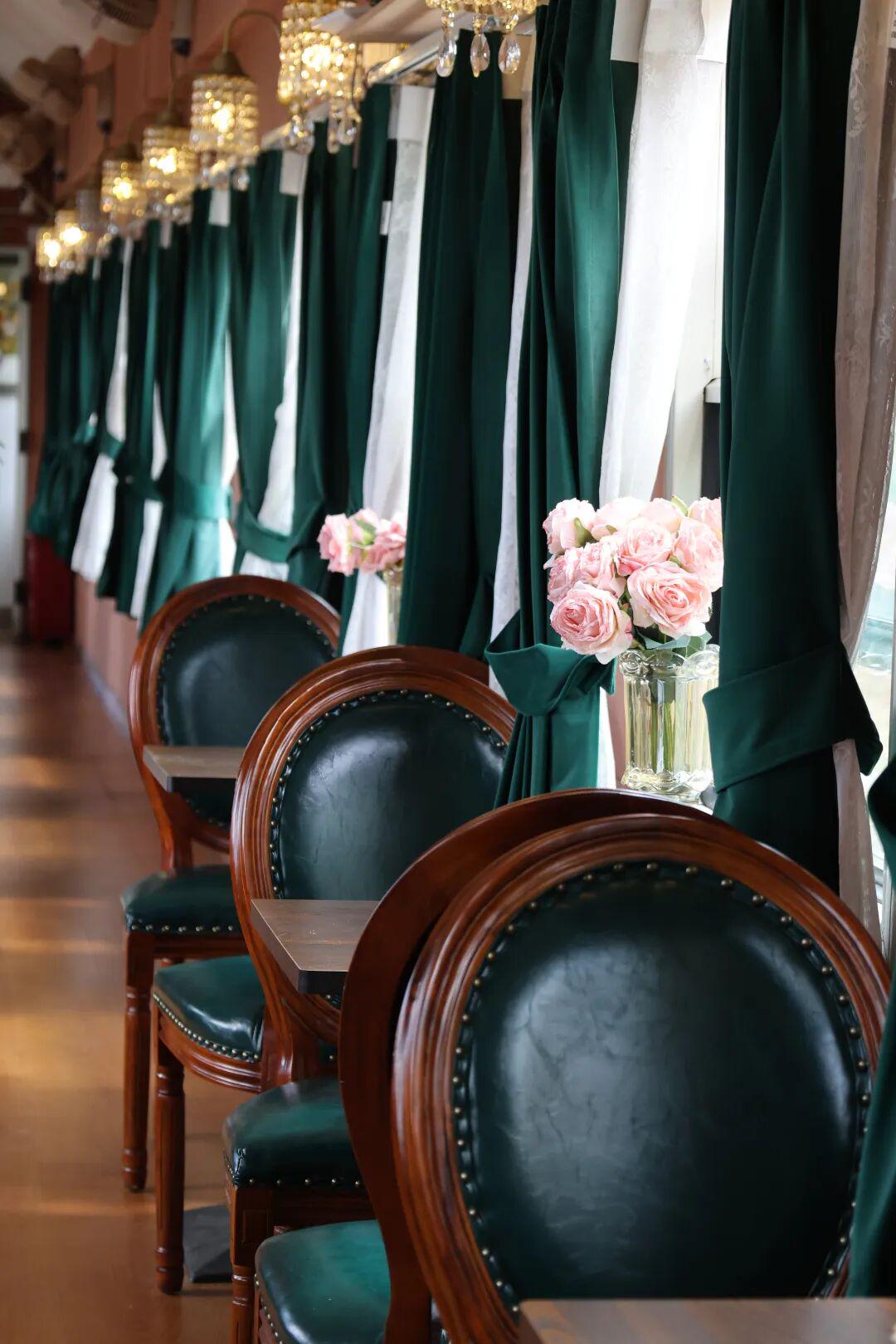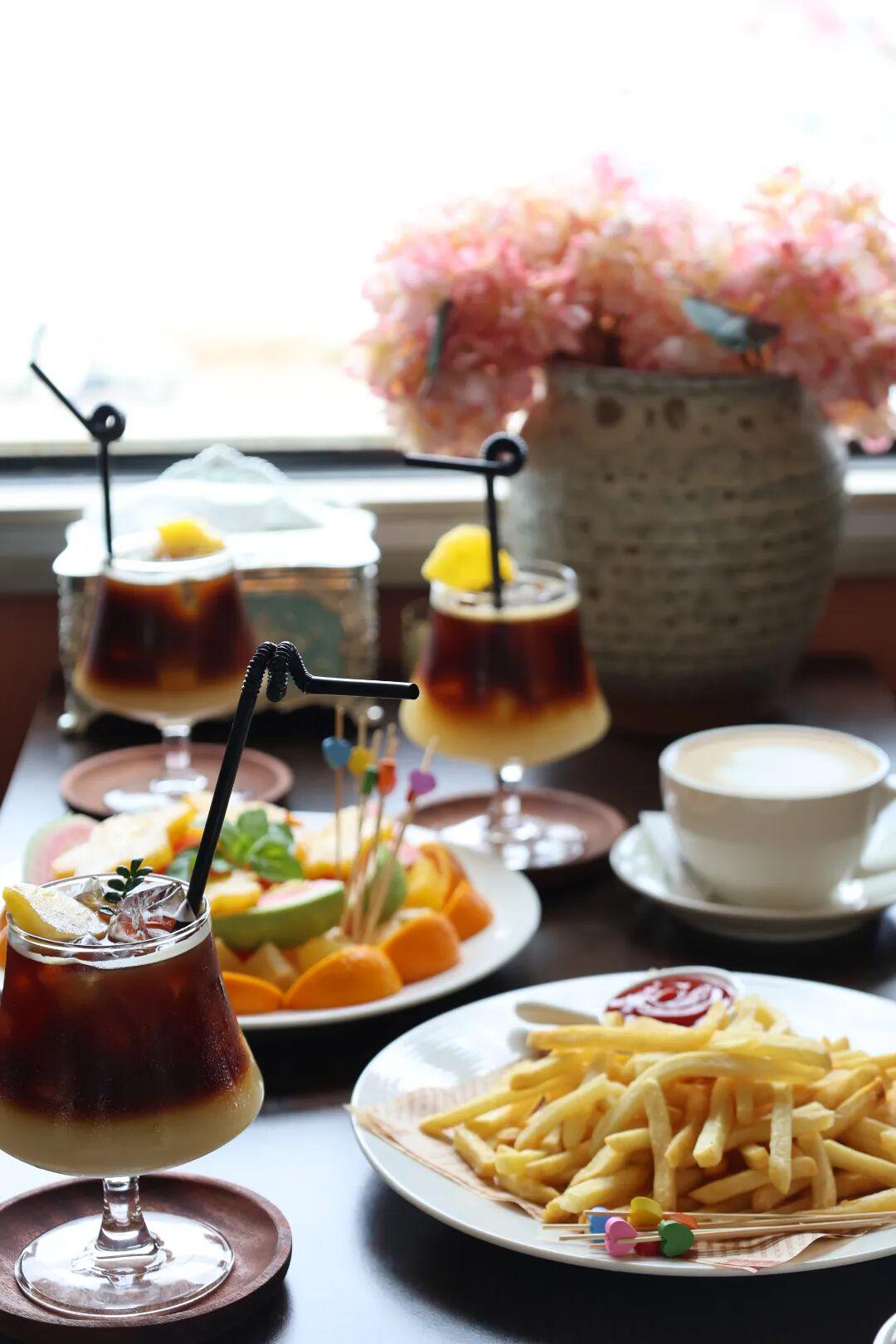 店里的咖啡是主理人用云南豆和埃塞俄比亚豆搭配的拼配,香气醇厚绵长,口感丝滑浓郁。点上一杯咖啡,搭配心仪的甜品或是简餐,伴着周围悠扬的老歌,从车厢窗口看出去,一场盛大的落日拉开序幕。