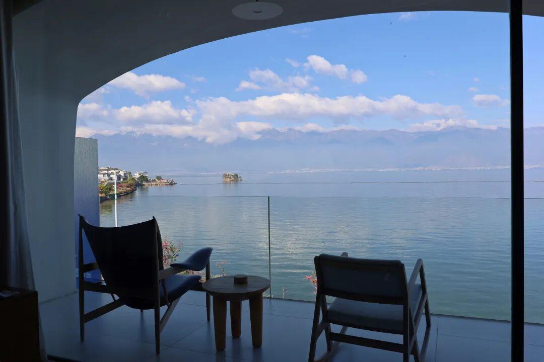 不必设闹钟,清晨,让窗外的波光自然将你唤醒。推开窗,远处的苍山还笼着薄雾,洱海的水面像一匹揉皱的蓝绸,温柔又静谧。