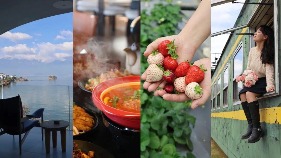 对岸的灯火次第亮起,在挖色的第一天结束了,把楼顶花园的水天辽阔、酸辣鱼的地道鲜香、草莓园的甜蜜果香、时光列车的落日璀璨,悉数珍藏心底。回到民宿,伴着洱海夜景泡一场舒缓的热水澡,洗去整日疲惫,带着对新一天旅程的期待沉入梦乡……