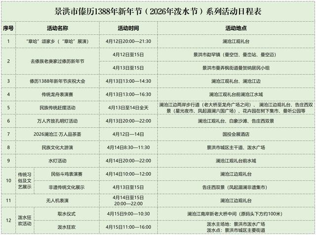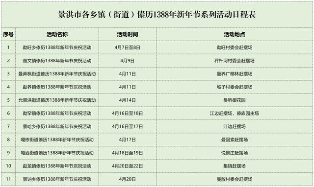 除了西双版纳州主会场,景洪市、勐海县、勐腊县及各乡镇系列活动等你来!