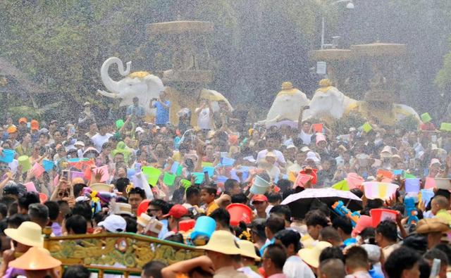 傣历1388年上城赶摆暨万人泼水狂欢活动:4月16日12:00—16:00,北回归大道、下城佛寺、白象寺、后城佛寺。