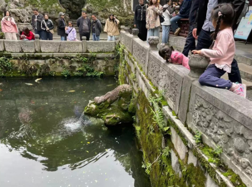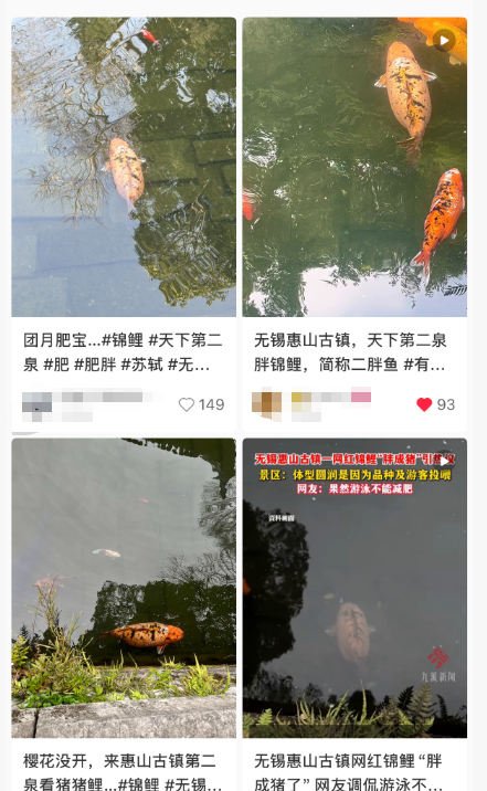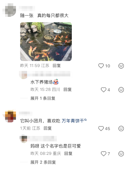 工作人员介绍,网红“小团月”从2014年起就生活在二泉池中,当年身形还算娇小。如今,它体型圆润主要由两个因素造成:一是锦鲤本身品种体型偏大,二是游客投喂所致。工作人员解释称:“现在更多是游客主动投喂,游客喂得多了,景区这边就不能再喂了。”